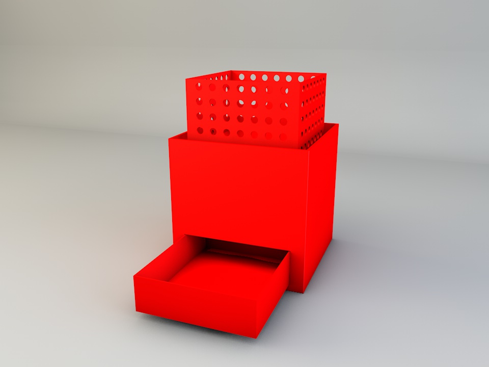 4cube is produced of main cube that acts as a casing, perforeted inset positioned inside and removable drowers at the base of the cube. these 3 components will have a different features depending on the use you wont to make a prodact.