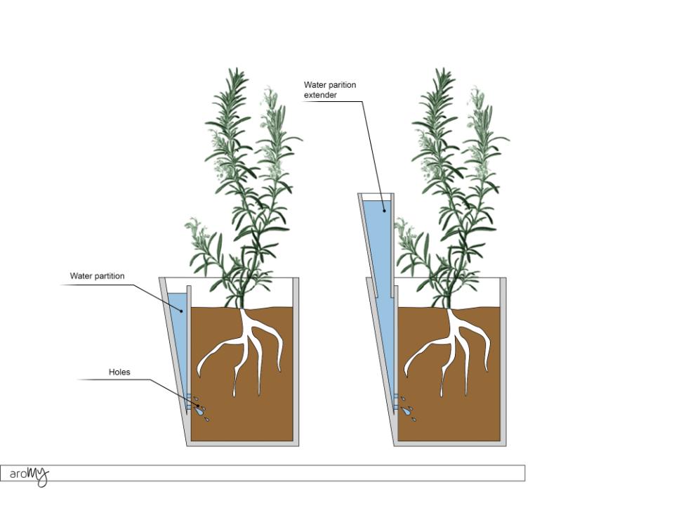 Aro-my is an eco-friendly vase which helps you grow your aromatic plants at home. Thanks to the filter, the plants absorb the right amount of water and you will have ready to use fresh ingredients for amazing dishes.