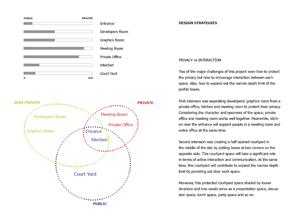 The major challenge of this project focused on how to protect privacy while encouraging interaction among spaces with different characteristics/functions at the same time. Additionally, expanding out the narrow depth limit of the prefab boxes was another challenge in this project.