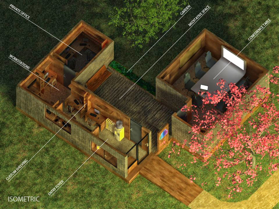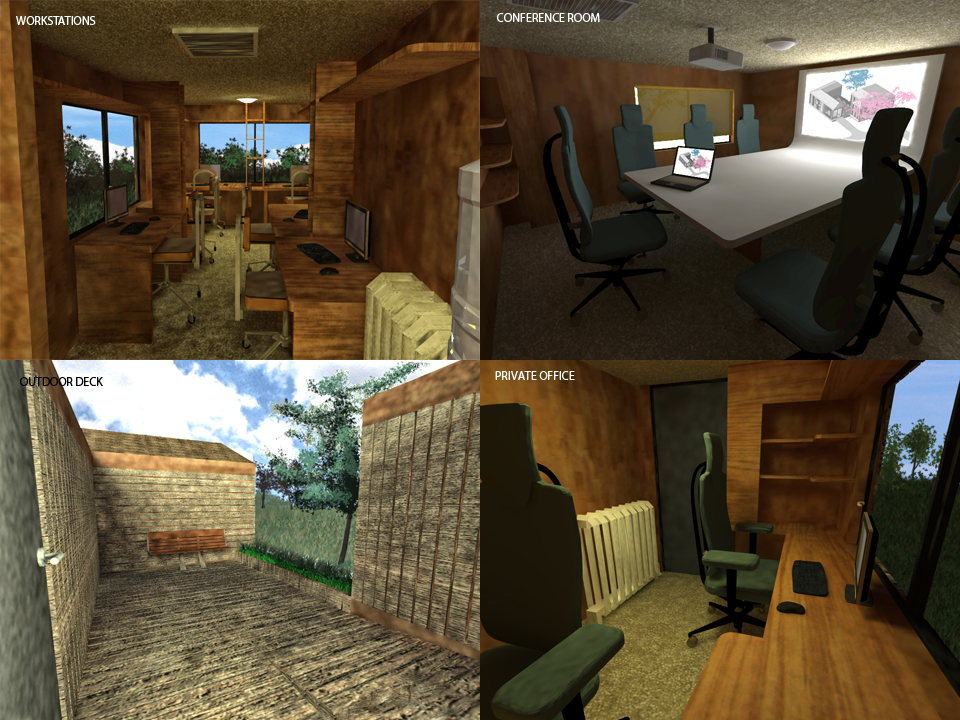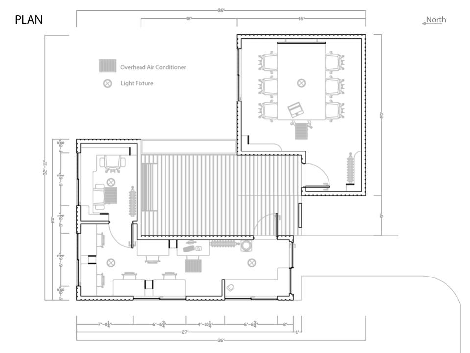 With a limited budget and small square footage, the primary objective of this design is to get more with less. Using solar orientation, appliance placement, and interior design measures, each design measure presents a cost-effective method to have an enjoyable working, presentation, and relaxing environment.