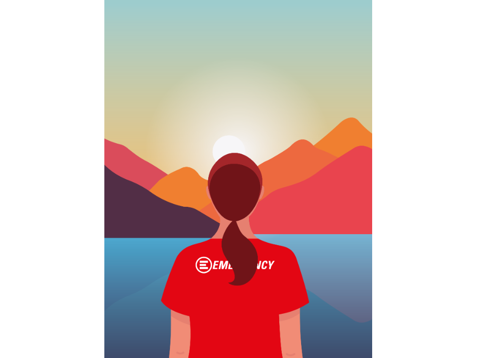 We see the prospect of a future without armed conflict not from our own eyes but through those who will enable this future to be achieved. We see through the personification of all those figures who have been around Emergency for thirty years and who are the authors of real miracles: the volunteers, doctors, couriers, cooks, teachers, operators and those who donate every month, enclosed in a maternal figure who guards and takes care of the place we live in.
